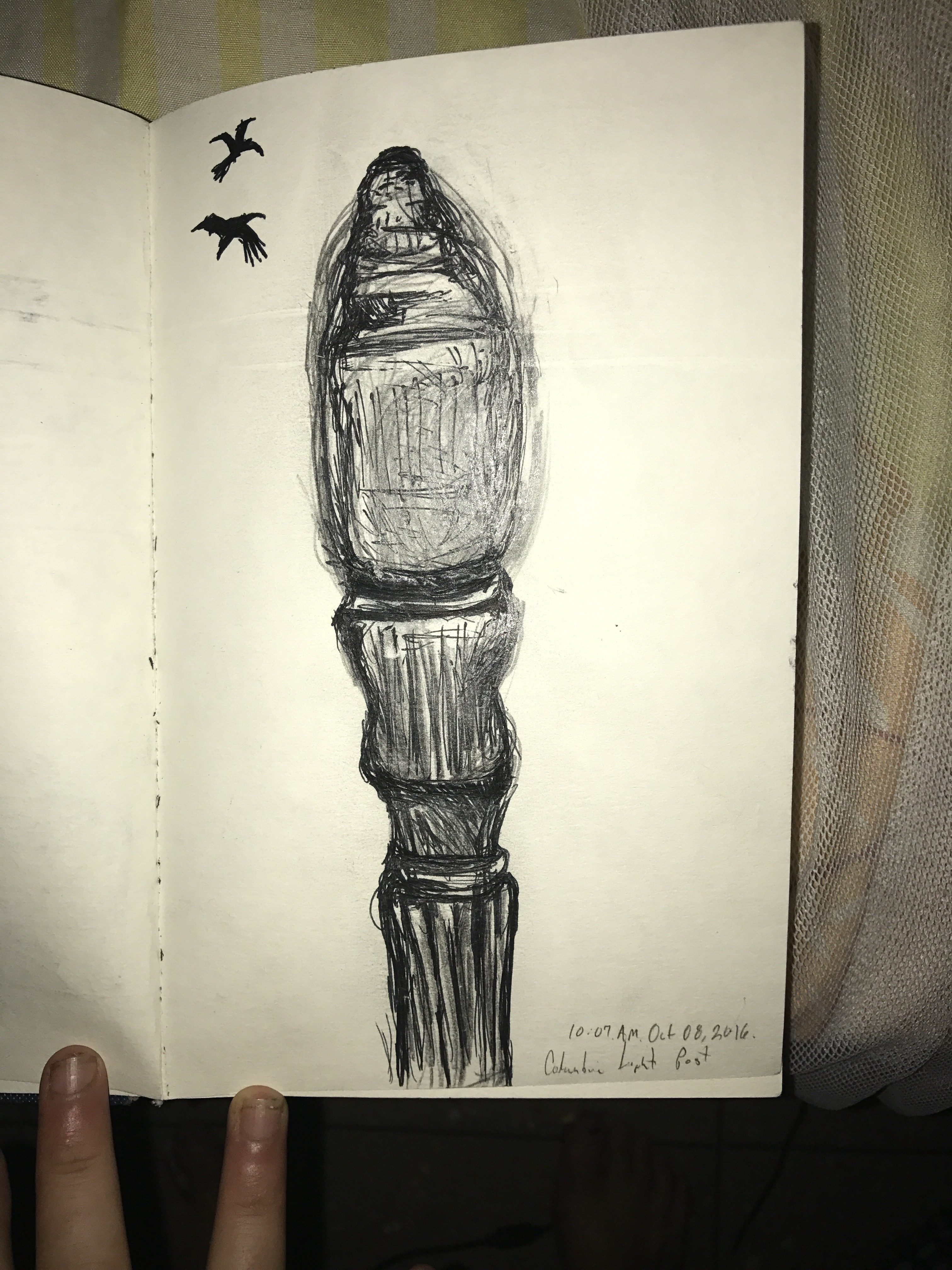 We arrived at Columbia at half passed nine and my friend was still asleep so I made myself comfortable on a concrete bench and began drawing. The whole time I replayed the moments leading me to NYC in my mind. Why did I choose this? What will I do when I do not have the prospect of meeting someone I know to look forward to? Then a young man sat down beside me, curious of what I was drawing I suppose but in my thought I completely forgot what I was doing. He asked if I went to school there and I explained I did not but openly shared why I was there and that I would be traveling. The man as if instructed to, told me everything I needed or wanted to hear, things I already knew but had hidden in the back of my mind, deliberately. He explained that it was an “honor”, “a great experience and accomplishment”. That my “family and friends will be so proud”. That I “will learn so much and grow in so many ways.” Then, with not even an exchange of names, just a simple hand shake and a “good luck” he was gone. I laughed at myself and tucked my head back into my sketch book. I could do this, I can and am doing this. Wow.